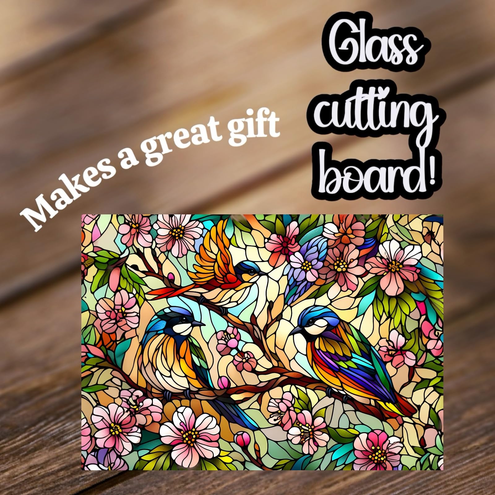 Decorative Glass Cutting Board with Stained Glass Birds Design, 11 x 7.87 inches, Kitchen Chopping Board (CUT09)
